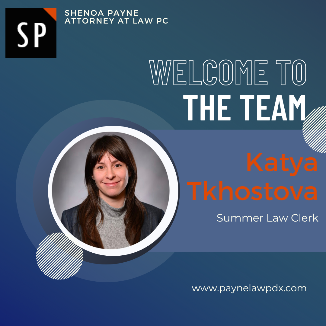 My firm is excited to welcome our summer law clerk, Katya Tkhostova. Katya is a rising 3L at Willamette University College of Law. She began her legal career journey to help reshape the legal profession and the justice system. She has always been passionate about advocacy and collaborating with like-minded individuals to create impactful, long-lasting change. Katya is interested in many areas of law, including Civil Rights, Employment, Environmental, and Transactional Law. Katya loves the Pacific Northwest and looks forward to practicing in Oregon after she graduates. In Katya's free time, she loves to garden, hike, and travel. Katya has a cat named Viola. Welcome Katya!